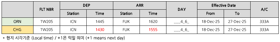 [REACCOM] 12/18~12/27 ICN/FUK 운항시간 변경 및 항공권 처리 안내