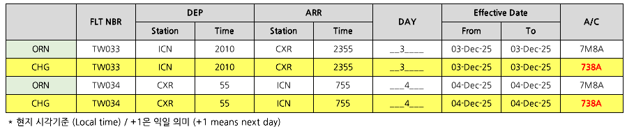 [REACCOM] 12/03 ICN/CXR V.V 기종 변경