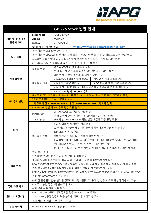 아래 또는 첨부 파일 참고 가능하시고 항공사 광장 GP-APG 에서도 모든 정보 확인 가능합니다.