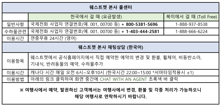 [수정]웨스트젯 본사 콜센터 연락처 안내