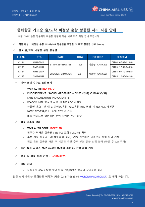 KORCI25_018_중화항공 가요슝 비정상운항 항공편 처리 지침안내 (31MAY25~) [UPDATE]1.pdf