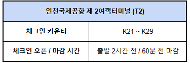 > 체크인 카운터 운영 및 위치는 공항 사정에 따라 변경될 수 있으니, 출발 당일 공항 내 전광판을 통해 최종 위치를 확인해주세요.