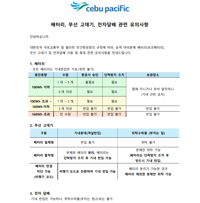 [공지 사항] 배터리, 무선 고데기, 전자담배 반입 유의사항(Updated 25.09.30)