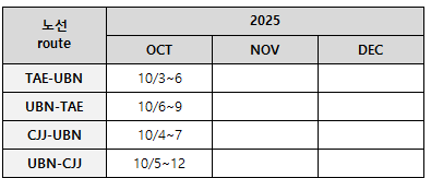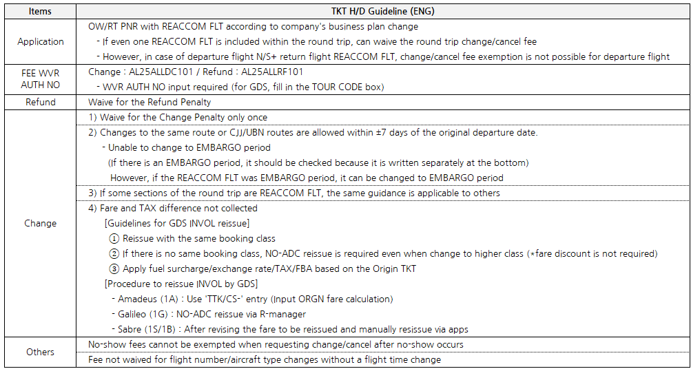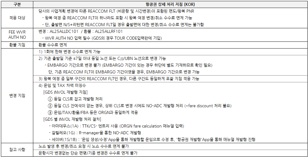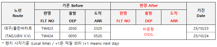 [REACCOM] 10/23~10/24 기간 TAE/UBN V.V 비운항 및 항공권 처리 안내