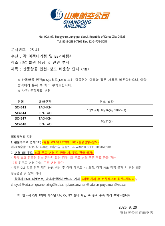 공문25-40 산동항공 인천-청도 비운항 안내 (18).docx