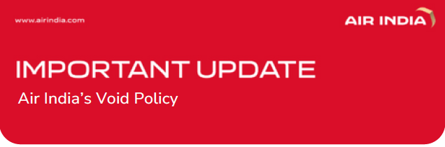 [에어인디아 항공권 VOID 정책 변경 안내] 2025년 10월 15일부터 에어인디아의 항공권 Void정책이 아래와 같이 변경됨을 안내드립니다. Void 처리 가능 조건은 다음과 같습니다: - 모든 판매 지점(POS) 포함: 모든 국가에서의 발권(미국 포함)