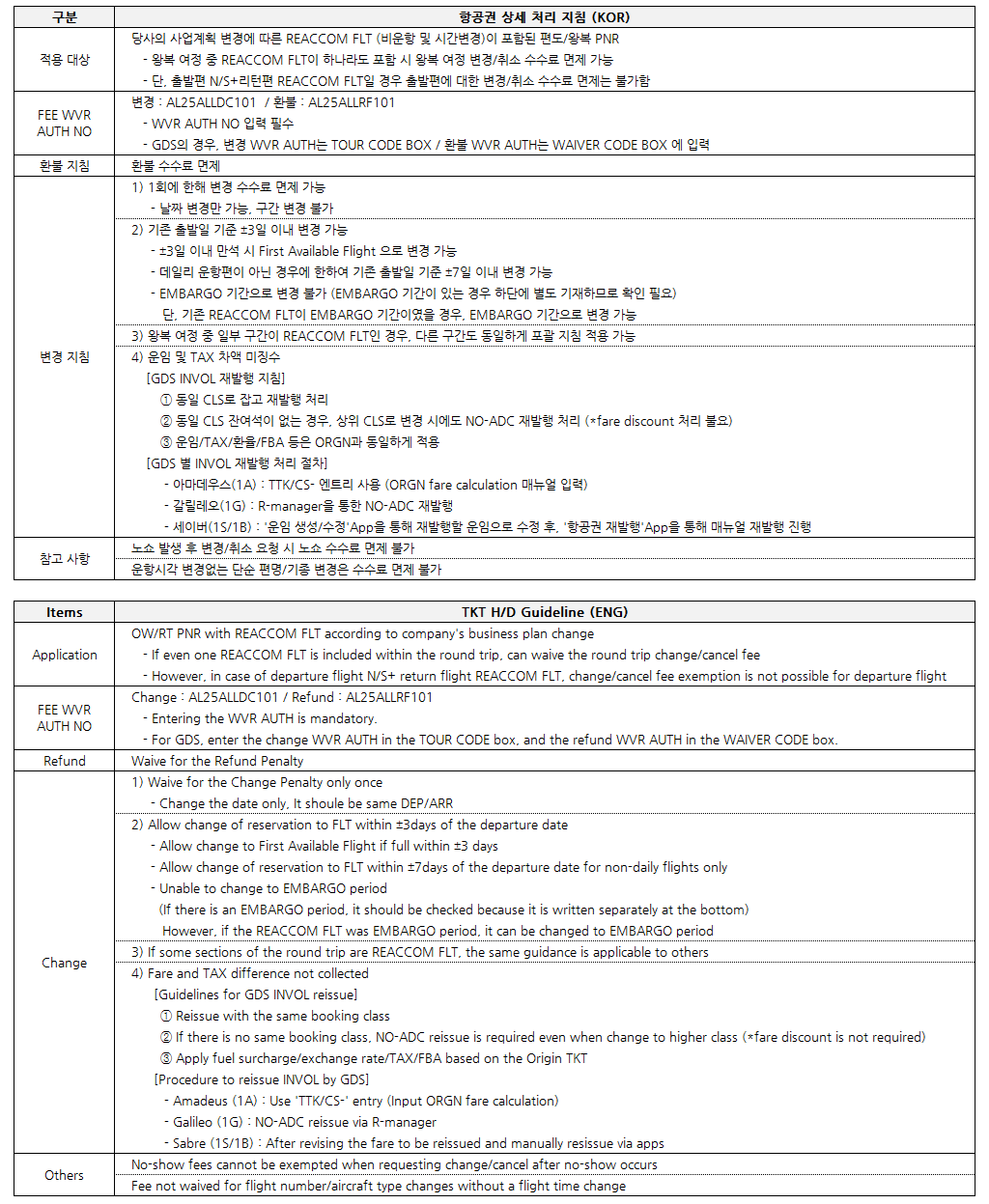 안녕하십니까.행복을 나르는 티웨이항공에서 다음과 같이 안내드리오니 해당 건에 대한 PNR 확인 부탁드립니다.We would like to inform you as follows, please check the PNR for the case.1. FLT2. TKT H/D Guideline3. Embargo