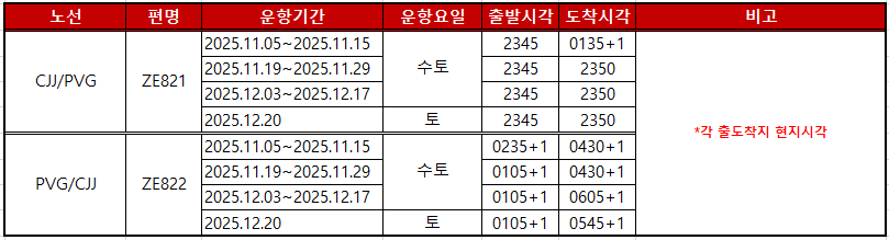 [스케줄 오픈] W25 CJJ-PVG v.v 노선 오픈 안내