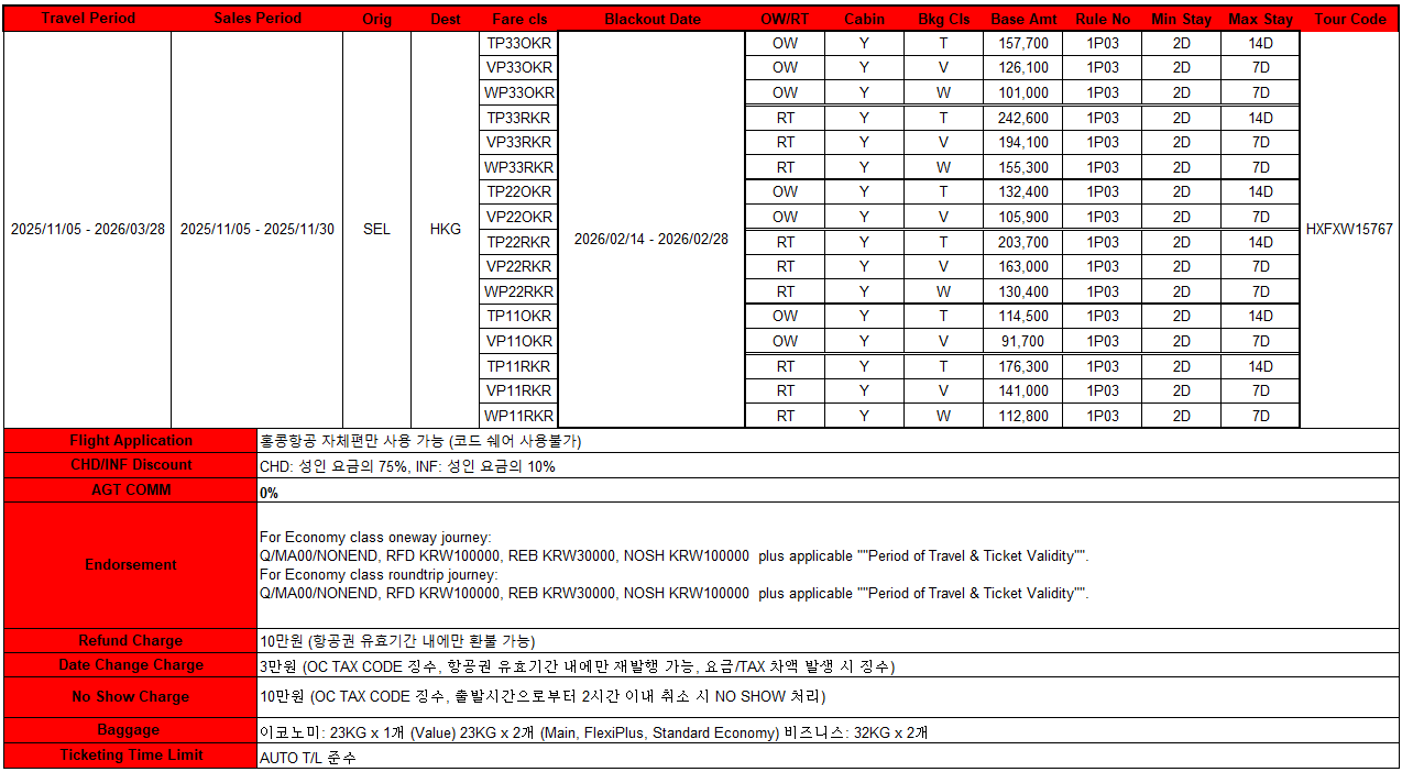기존 운임의 최대 19% 할인이 적용되며, 자세한 운임 및 규정은 아래를 참고 부탁드립니다.