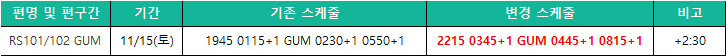하기와 같이 '25/11/15(토) GUM노선 RS101/102편 SKD CHNG에 따른 PENALTY WVR 지침을 공지드리오니,