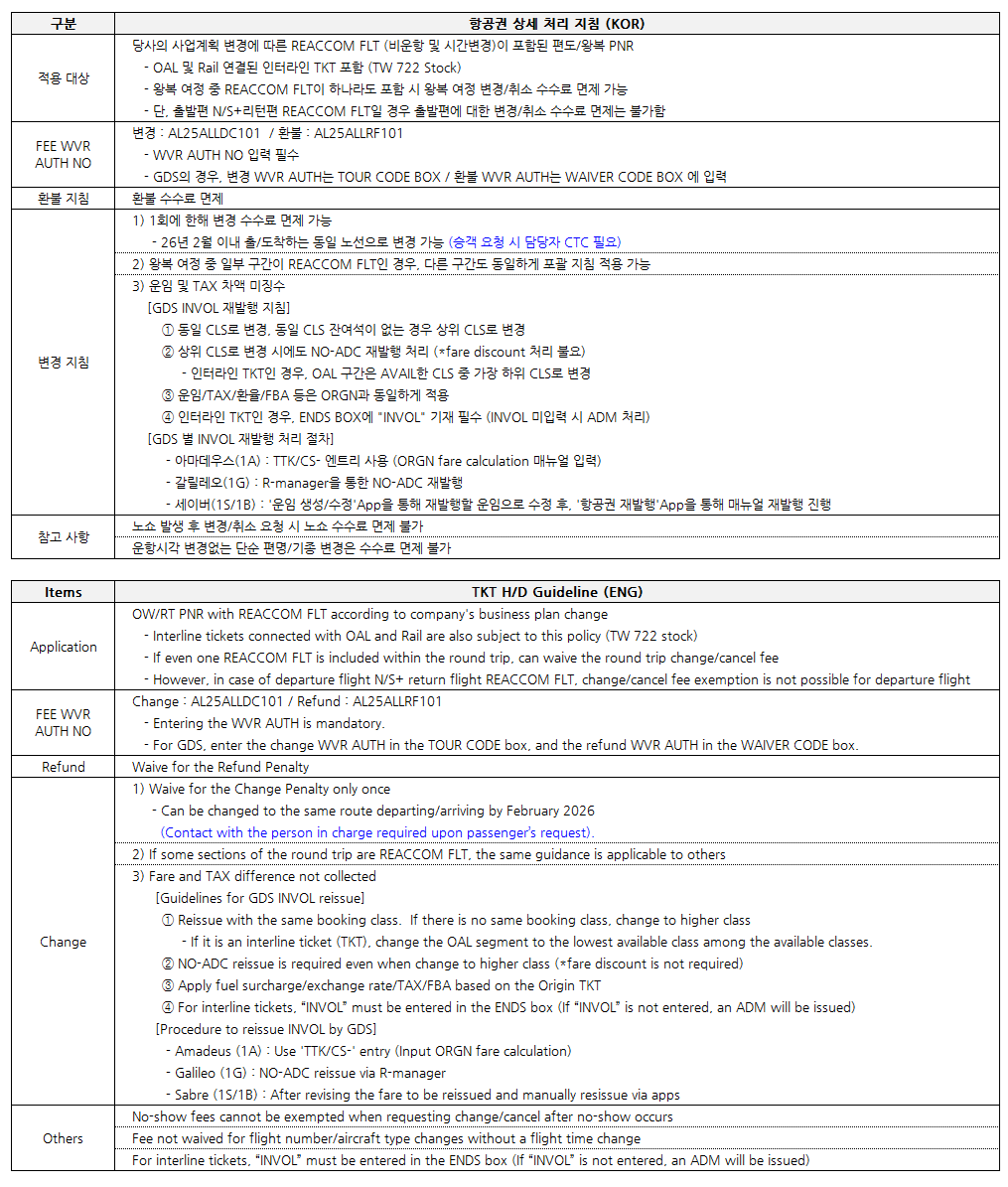 [REACCOM] 11/12~11/16 ICN/SYX V.V 비운항 및 항공권 처리 안내