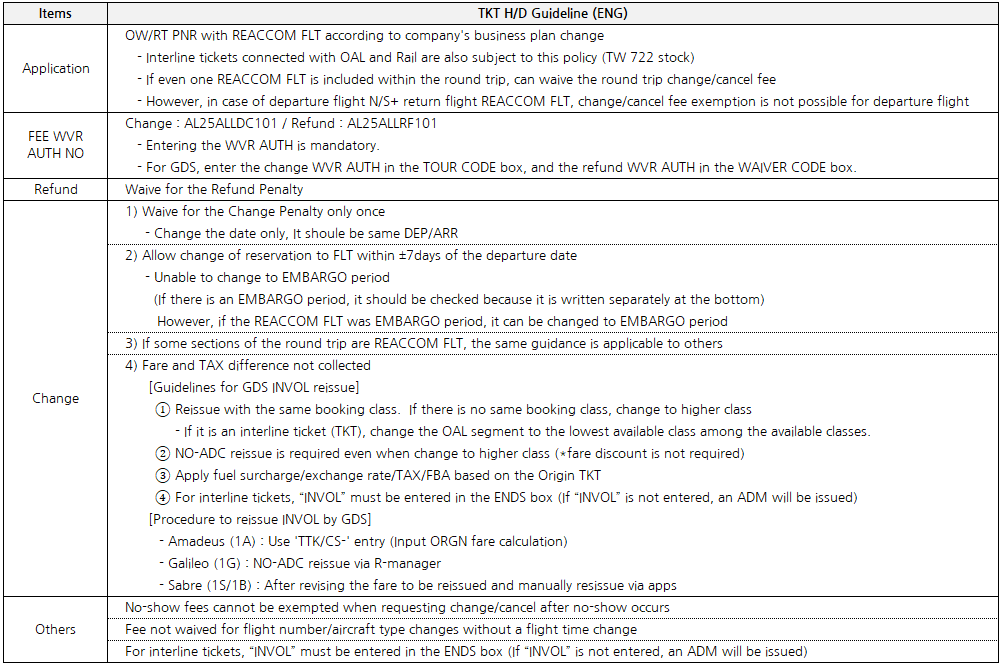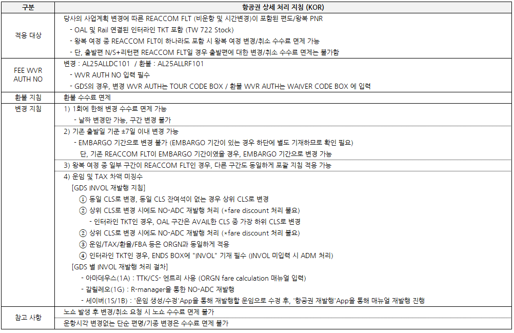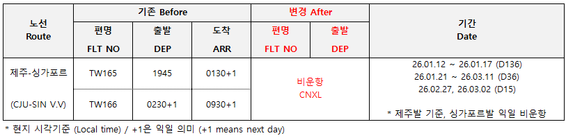 [REACCOM] 1/12~03/2 CJU/SIN V.V 비운항 및 항공권 처리 안내