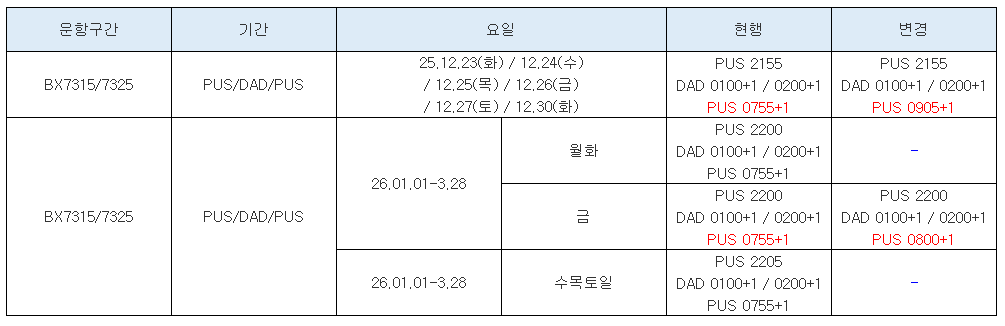 Fly smart AIRBUSAN 입니다. 아래와 같이 SKD 변경 안내드립니다.