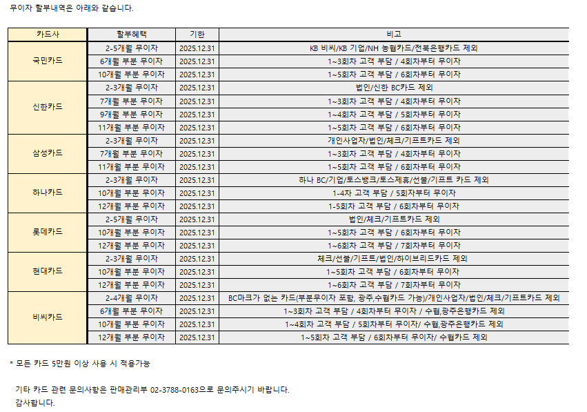 SK [기타공지] 12월 무이자 할부행사 안내
