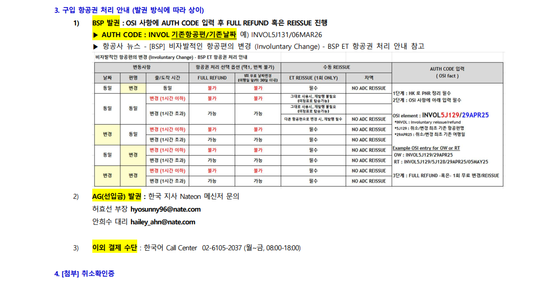 2026년 3월 취소 항공편 안내 (인천-세부-인천)