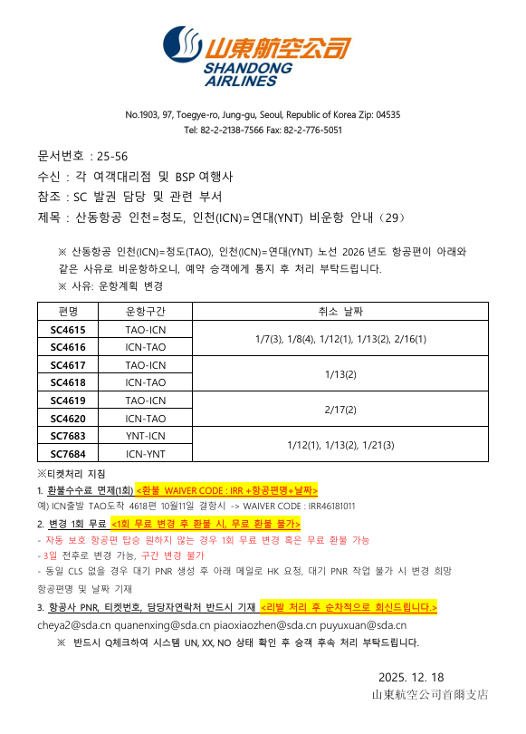 공문25-56 산동항공 인천-청도, 인천-연대 비운항 안내 (29).docx