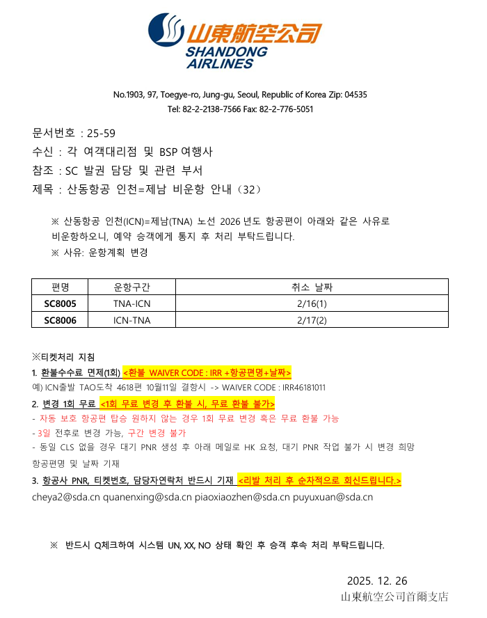 공문25-59 산동항공 인천-제남 비운항 안내 (32).docx