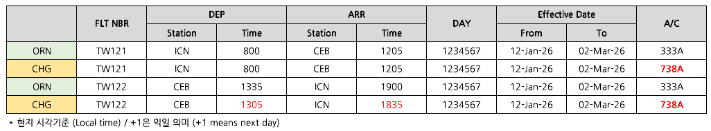 1) Downgrade (Business → Economy) 에 동의하는 승객인 경우 Passengers who agree to a downgrade (Business to Economy) - 취소 후 신규구매 필요 (환불 수수료 면제 가능 / AUTH NO : AL25ALLRF101) - Need to cancel and make a new purchase (refund fee can be waived / WVR AUTH NO: AL24ALLRF101) - 신규 구매 후 TW 예약센터 컨택 (비즈니스에 준하는 부가서비스 제공 예정) - Contact TW reservation center after new purchase (additional service equivalent to Business will be provided)