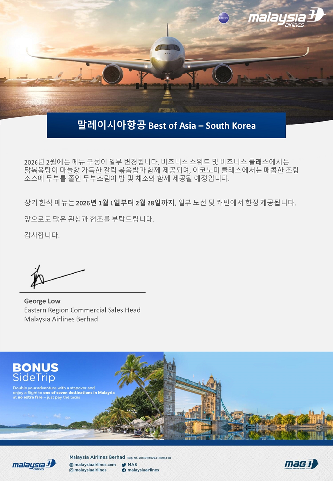 말레이시아항공 특별 기내식 - Best of Asia - South Korea