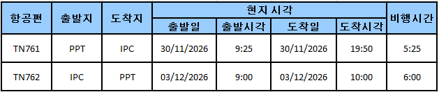 [TN_에어타히티누이] PPT-IPC 구간 전세기 운항 안내 ( 2026년11월-12월 )