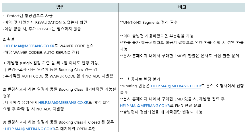 항공권 관련해서는 하기 가이드라인 참고 부탁드립니다.
