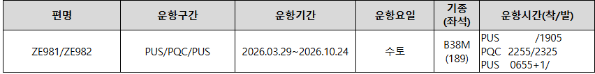 [스케줄 오픈] 26년 하계 스케줄 오픈 안내 PUS-PQC v.v