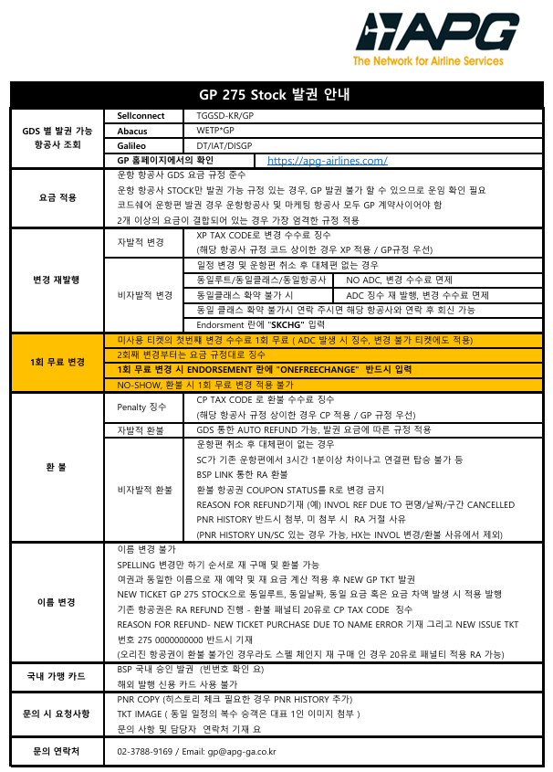 - ONE FREE CHANGE 알아보기 (클릭) - 국내승인 신용카드 빈번호 확인하기 (클릭) - 분실 수하물 무료 보상&검색서비스 확인하기 (클릭) 감사합니다. 전화 02-3788-9169 /Email : gp@apg-ga.co.kr
