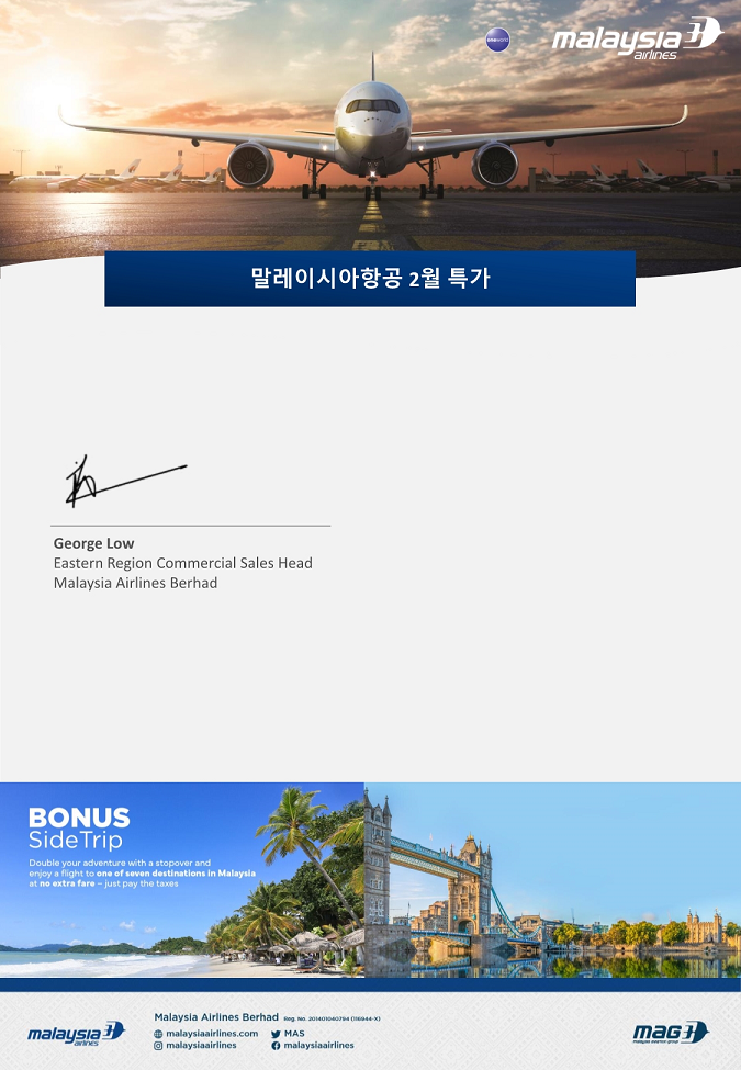말레이시아항공 2월 특가 eff. 27Jan26