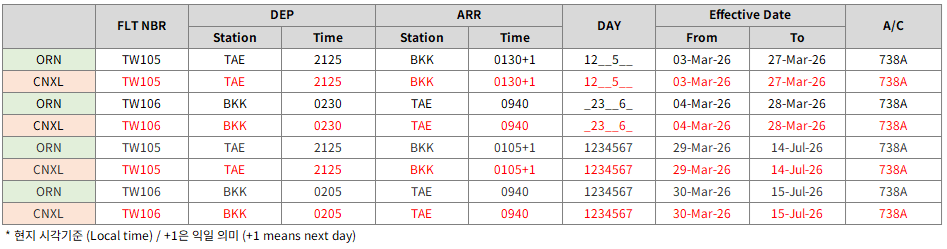 [REACCOM] 03/03~07/15 TAE/BKK V.V. 비운항 및 항공권 처리 지침 안내