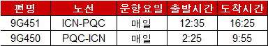 신규 취항을 맞이해서 인천-푸꾸옥 운항 일정과 다양한 할인 혜택을 안내하오니 많은 관심 부탁드립니다. 1. 인천-푸꾸옥 운항 일정