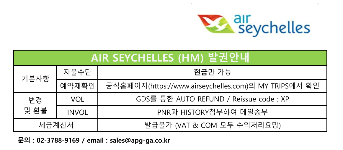안녕하세요. AIR SEYCHELLES (HM) 입니다.