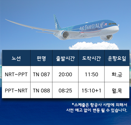 [TN_에어타히티누이] TN087/088 (NRT-PPT/PPT-NRT) 운항 스케줄 변경 공지