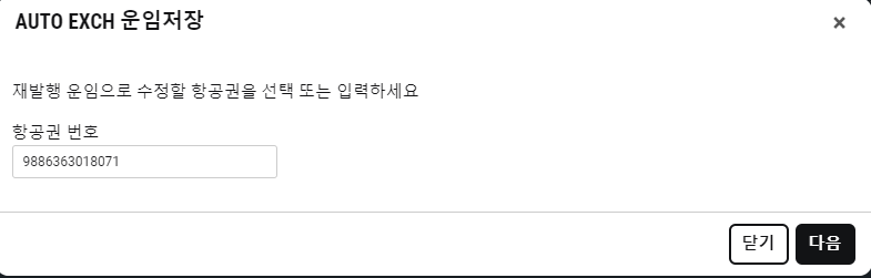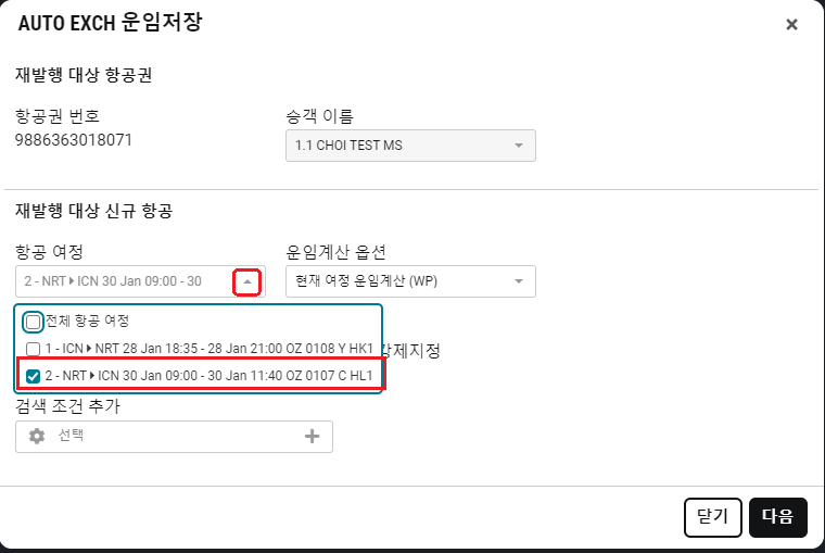 (Step 2) 재발행 할 항공권 번호 선택 후 ''다음''