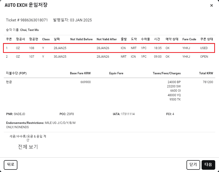 SR360 에서 부분 사용한 항공권의 재발행이 필요하다면,,! 보다 간편하고 재발행 운임이 개런티 되는, 자동 재발행(AUTO EXCH)으로 부분 재발행 하는 방법을 알려 드립니다. [부분 사용한 항공권]