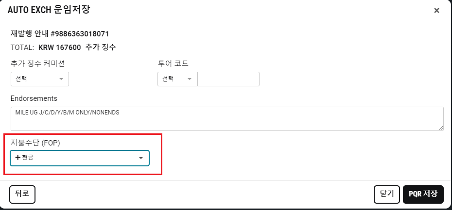 (Step 6) 지불 수단 입력 후 ''PQR 저장''