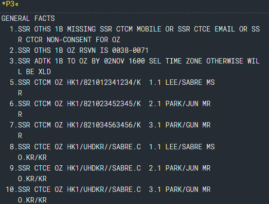 X3S SSR CTCM OZ HK1/821012341234/KR -LEE/SABRE MS